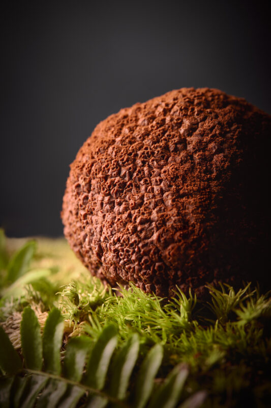 Entièrement recouvert de chocolat, le Joyau Noir semble tout droit sorti de terre. A l’intérieur, l’entremet dévoile une mousse au chocolat au lait et une ganache aux précieux éclats de truffe noire. Monochrome sculpté tout en majesté, le Joyau Noir présente en bouche une puissance hors du commun grâce à la présence de la truffe noire, adoucie par le chocolat au lait du Pérou 45% de chez Nicolas Berger, artisan en bean-to-bar. Aurélien Rivoire réinvente ainsi un classique des fêtes, pour déguster la truffe au chocolat autrement. Une exclusivité pour les Galeries Lafayette Le Gourmet.