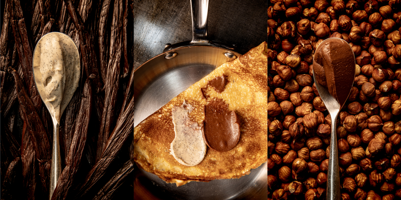 Imaginées pour accompagner la Chandeleur, ces pâtes à tartiner se dégustent sur des crêpes, pains toastés, ou simplement à la cuillère.