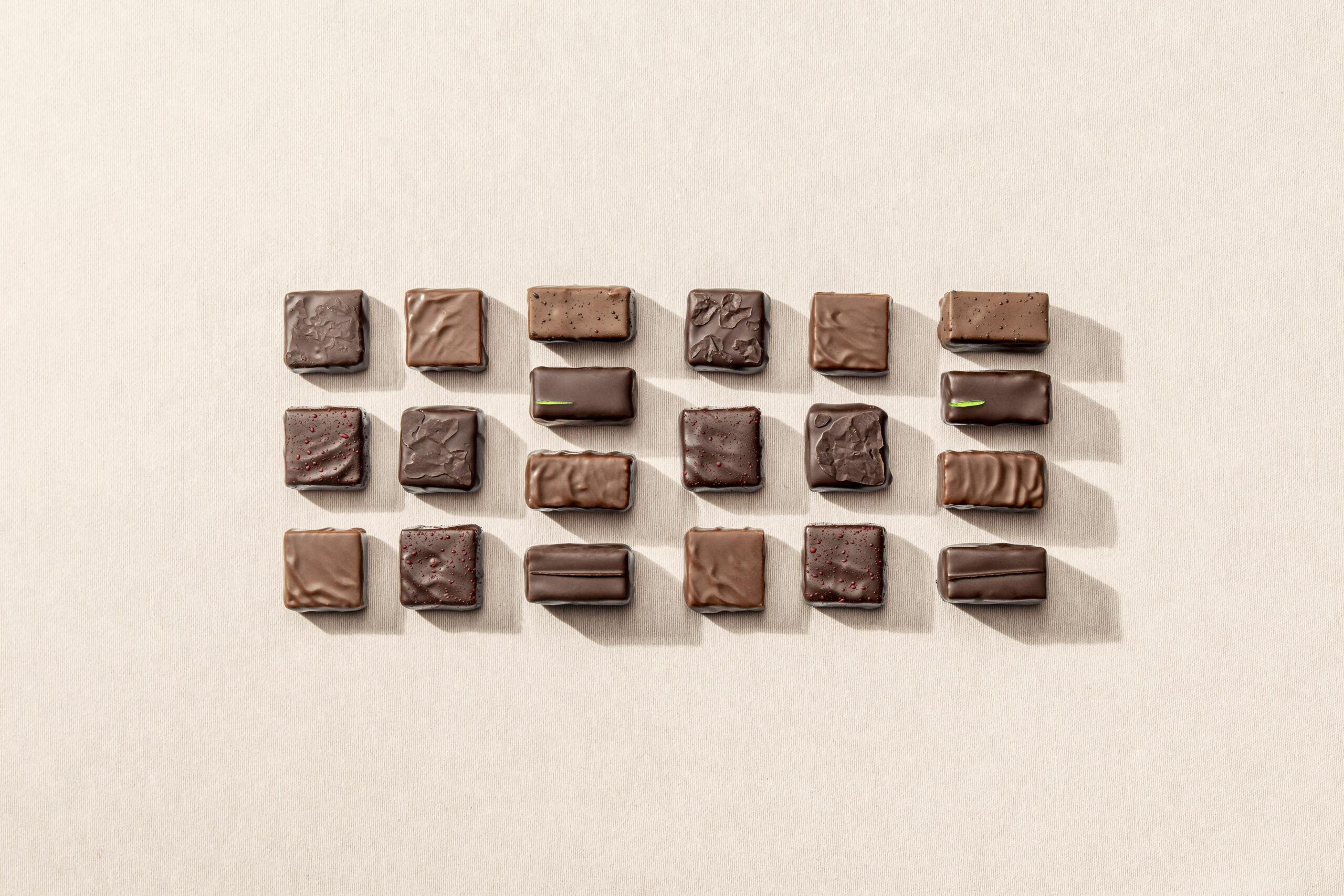 Crème liquide 35% (contient crème de lait, stabilisant: carraghénanes extraits d’algues marines)., chocolat noir Equateur (55% de chocolat min) (contient fèves de cacao d’Equateur, beurre de cacao, sucre, lécithine de tournesol, extrait naturel de vanille), chocolat au lait bitter (39% de chocolat min) (contient sucre, beurre de cacao, lait entier en poudre, fèves de cacao, émulsifiant : lécithine de tournesol, extrait naturel de vanille), chocolat au lait Pérou (45% de chocolat min) (contient xylitol (e967), fèves de cacao du Pérou, lait en poudre, beurre de cacao, lécithine de tournesol bio, fleur de sel), chocolat au lait Pérou (contient 55% de chocolat min) (contient xylitol (E967), fèves de cacao du Pérou, lait en poudre, beurre de cacao, lécithine de tournesol bio, fleur de sel), amandes, avec édulcorant xylitol (E967), chocolat noir Pérou (80% de chocolat min) (contient xylitol (E967) fèves de cacao du Pérou, beurre de cacao), noisettes, noix de pécan, noix de coco, graines de lin, beurre doux (Lait), beurre de cacao, eau, sel, enveloppe de cacao, colorant alimentaire (E102, E129, E132, E133).